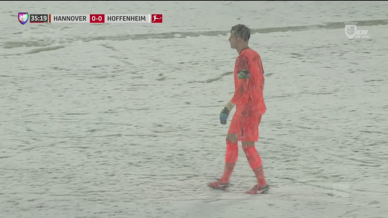 Hoffenheim mostró intentos peligrosos en el inicio del encuentro, pero conforme avanzaron los minutos y con la nieve apilándose en el terreno el tránsito del balón se fue complicando.