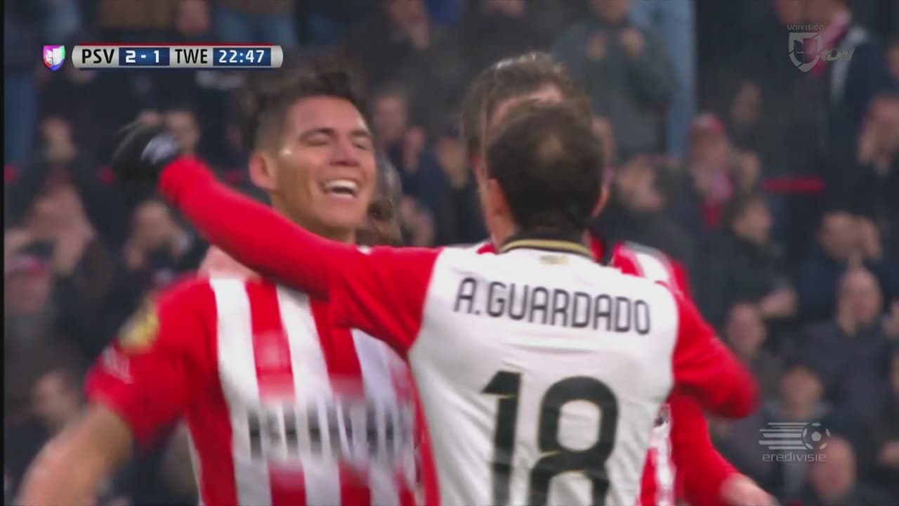 Conexión mexicana: Héctor Moreno, a pase de Andrés Guardado, hace dos goles en dos minutos en el duelo del PSV Eindhoven ante el Twente.