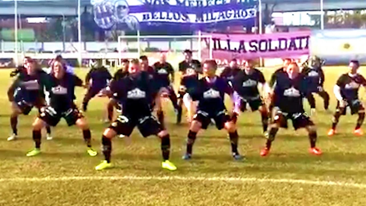 Emulando a la selección neozelandesa de rugby, este club de fútbol –que ascendió a la Primera B de Argentina- estrenó una divertida danza ritual. La canción incluye: “Lechuga, palmito y salsa golf”.