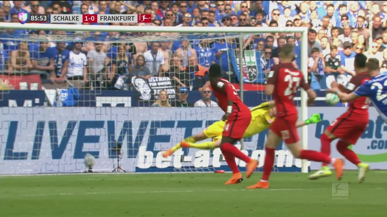 El arquero del Frankfurt salvó a su equipo de otro tanto al atajarle un potente cañonazo a Cedric Teuchert.