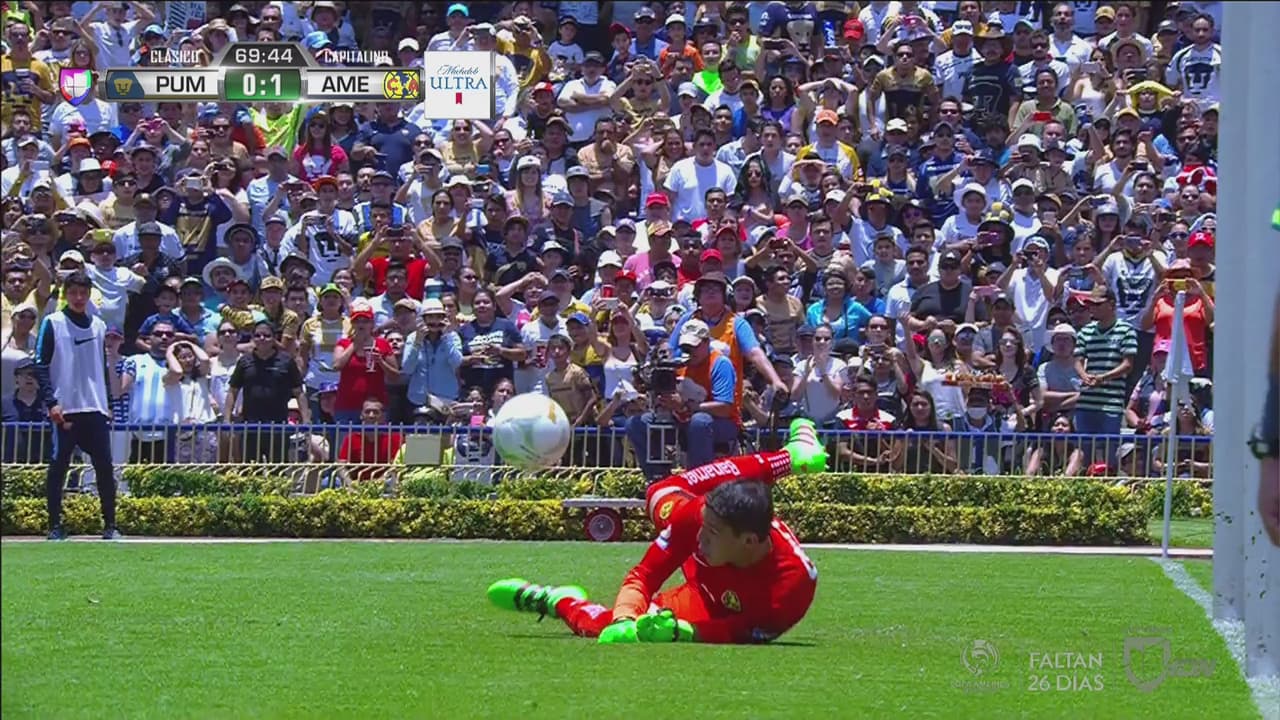 El portero de América le detiene un penal a Ismael Sosa y mantiene la ventaja para el América ante los Pumas.