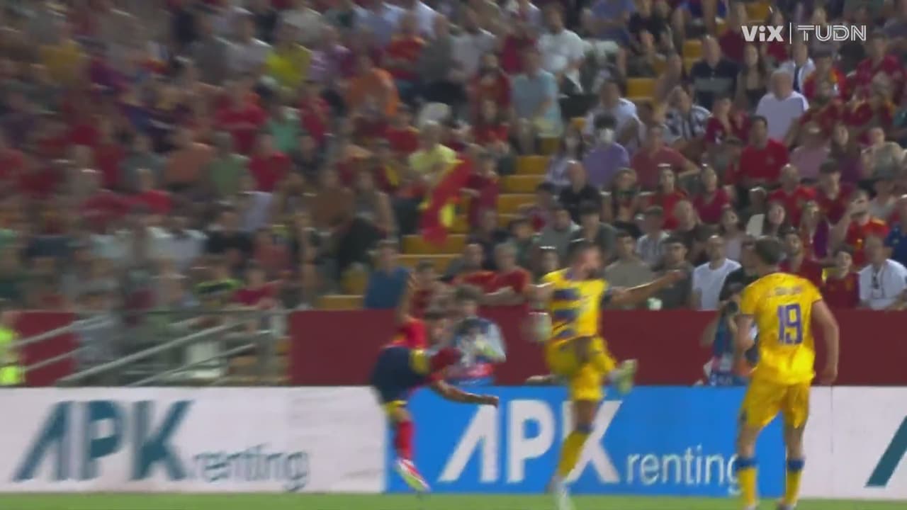 El atacante de España estuvo a punto de firmar su doblete en su debut con selección, pero el último hombre de Andorra lo evitó.