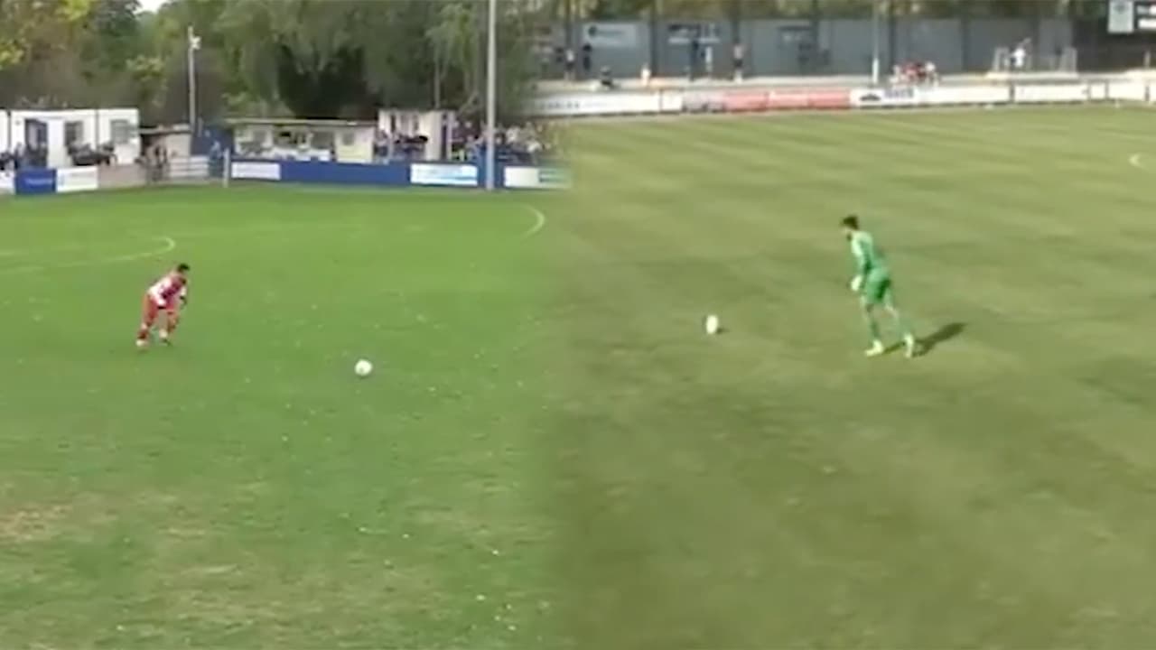 Se trata de Deren Ibrahim, arquero del Dartford FC, quien anotó esta gran tanto para darle la victoria a su equipo este fin de semana. Hace dos años, Ibrahim hizo una tanto en situaciones prácticamente idénticas.