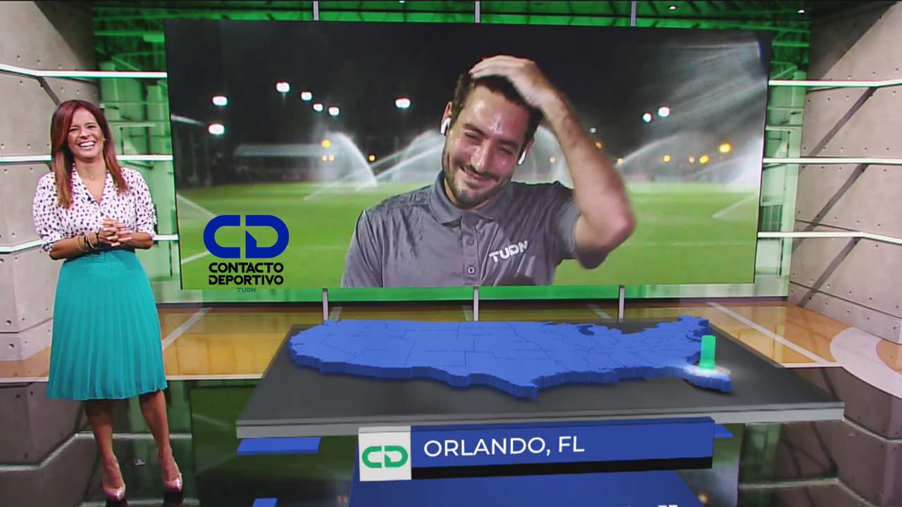 Nuestro reportero de la MLS is back apareció empapado al aire luego de que se encendiera el sistema de riego de una de las canchas.