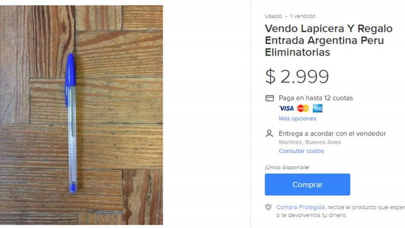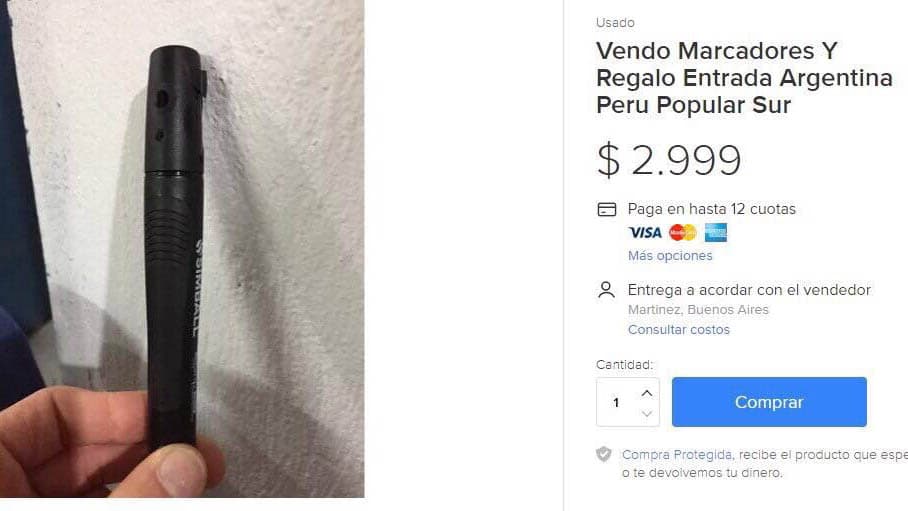 Se vendían lapiceras y marcadores y, con la adquisición, se ‘regalaban’ nada menos que boletos para dicho encuentro trascendental. ¿Dónde estaba el truco? En el precio: 3.000 pesos argentinos (unos 170 dólares) por simples artículos de librería que no superan los diez pesos.