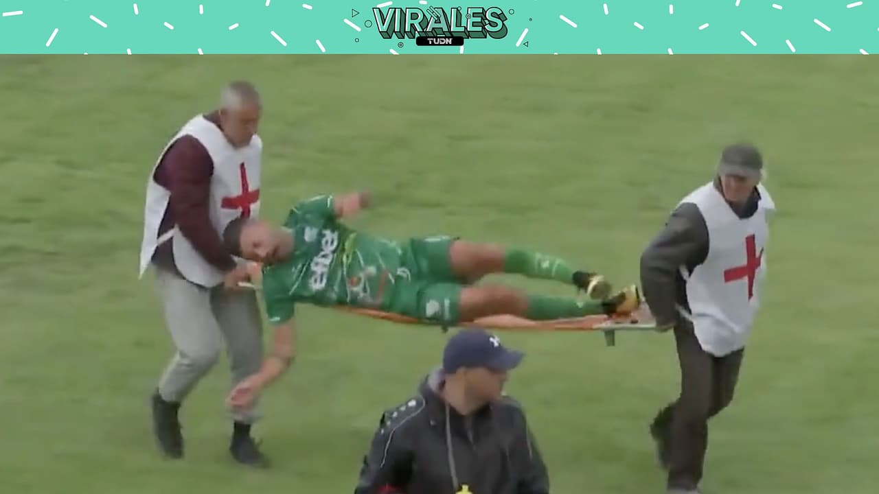 ¡Innovador! Futbolista se lanza desde la camilla para hacer tiempo