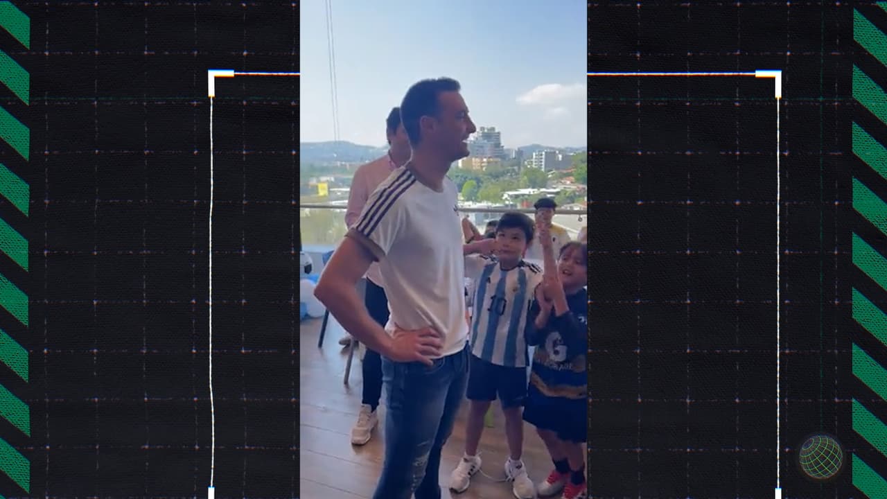 Insólito recibimiento de niños de El Salvador a Scaloni con "muchachos"