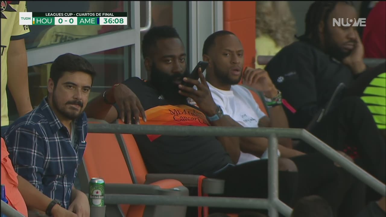 La ‘Barba’, superestrella de los Houston Rockets de la NBA, asistió a ver el encuentro del equipo de la MLS contra el América.