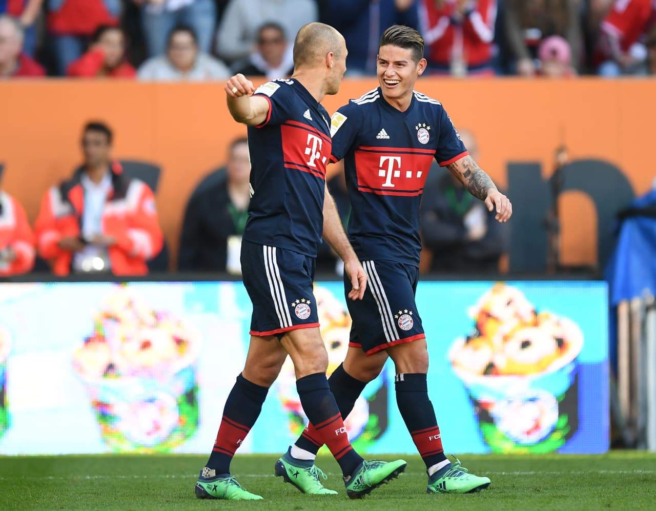 James lució ante el Augsburg con un gol y distribuyendo juego con los bávaros para ayudar a su club a sumar su sexto título consecutivo en la Bundesliga.