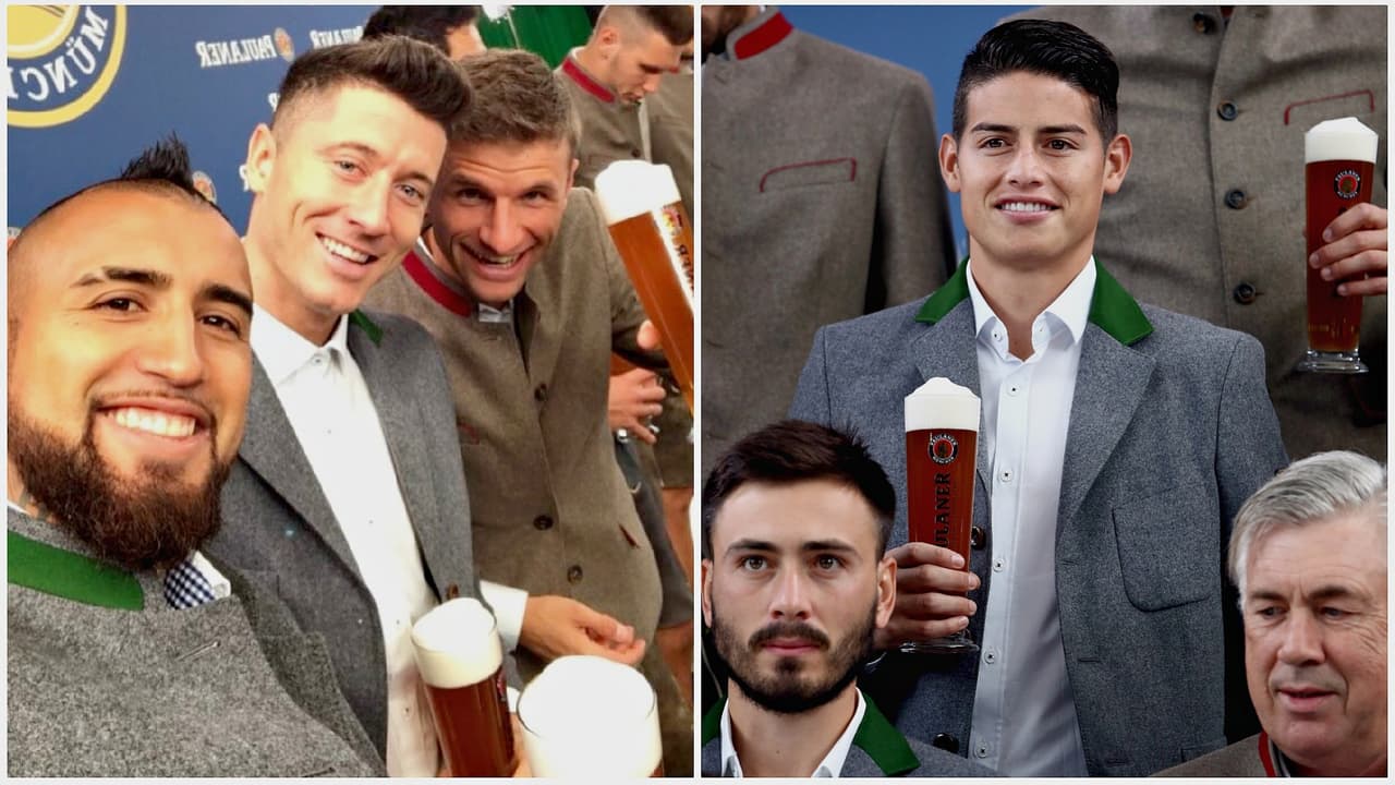 El colombiano y el chileno celebraron por partida doble: primero porque en el Bayern Munich comenzaron con el tradicional Oktoberfest y, después, porque fue el cumpleaños 28 de su compañero. ¡Salud!