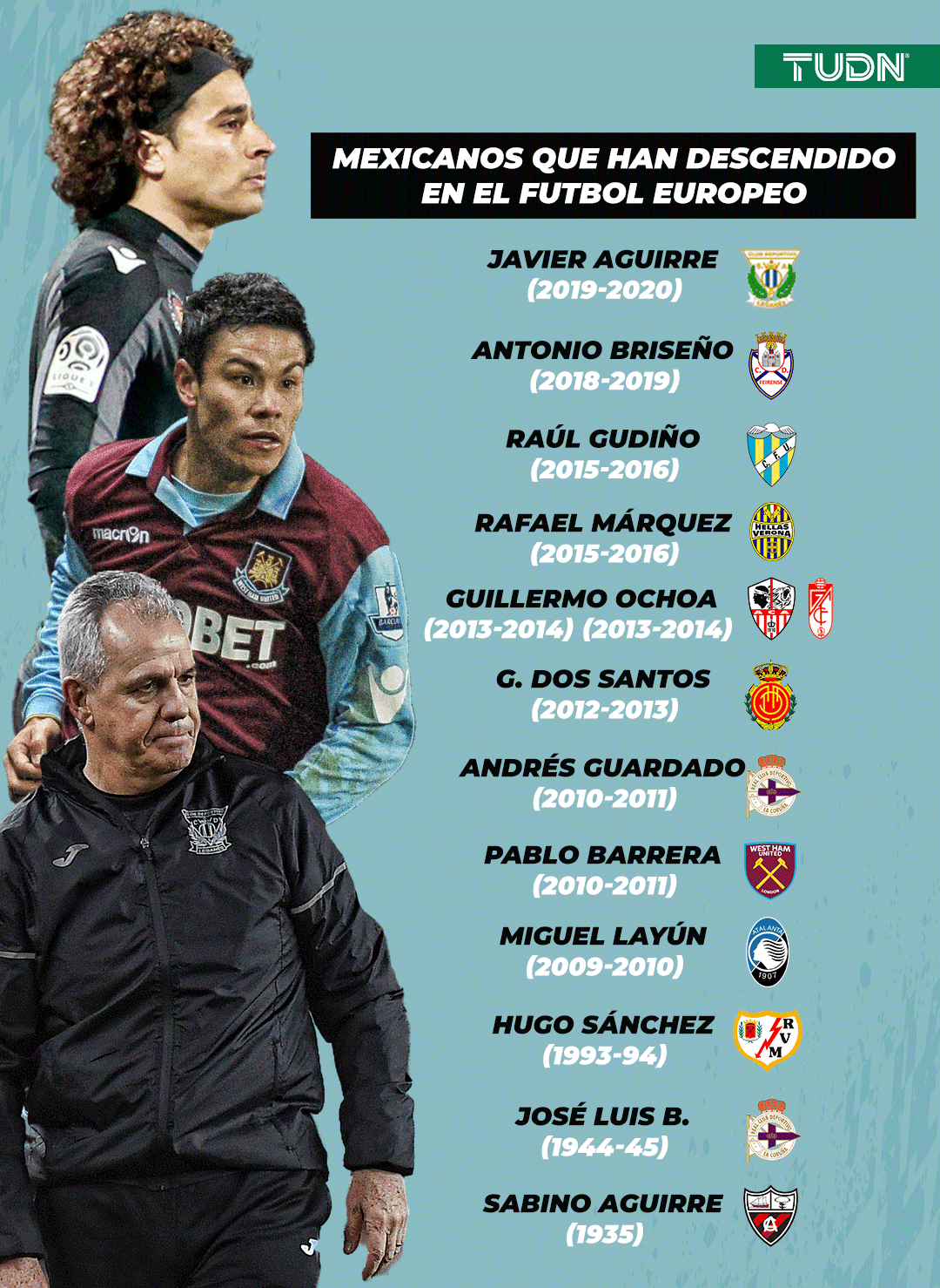 Javier Aguirre perdió la categoría en LaLiga para convertirse en el duodécimo mexicano en descender en el futbol europeo y en el primer entrenador mexicano en hacerlo esta temporada 2019-2020.