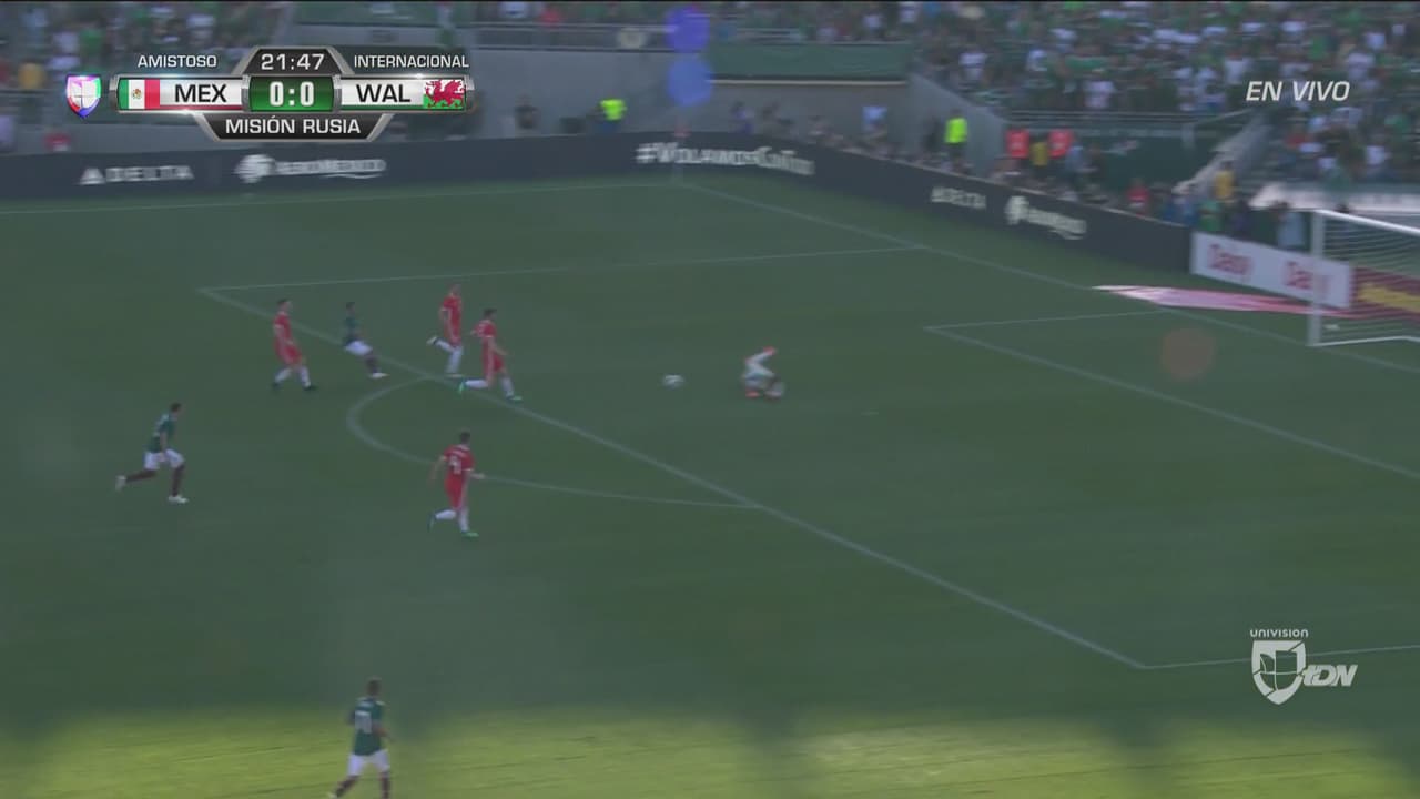 El oaxaqueño sacó un disparo al cuerpo del portero de Gales.