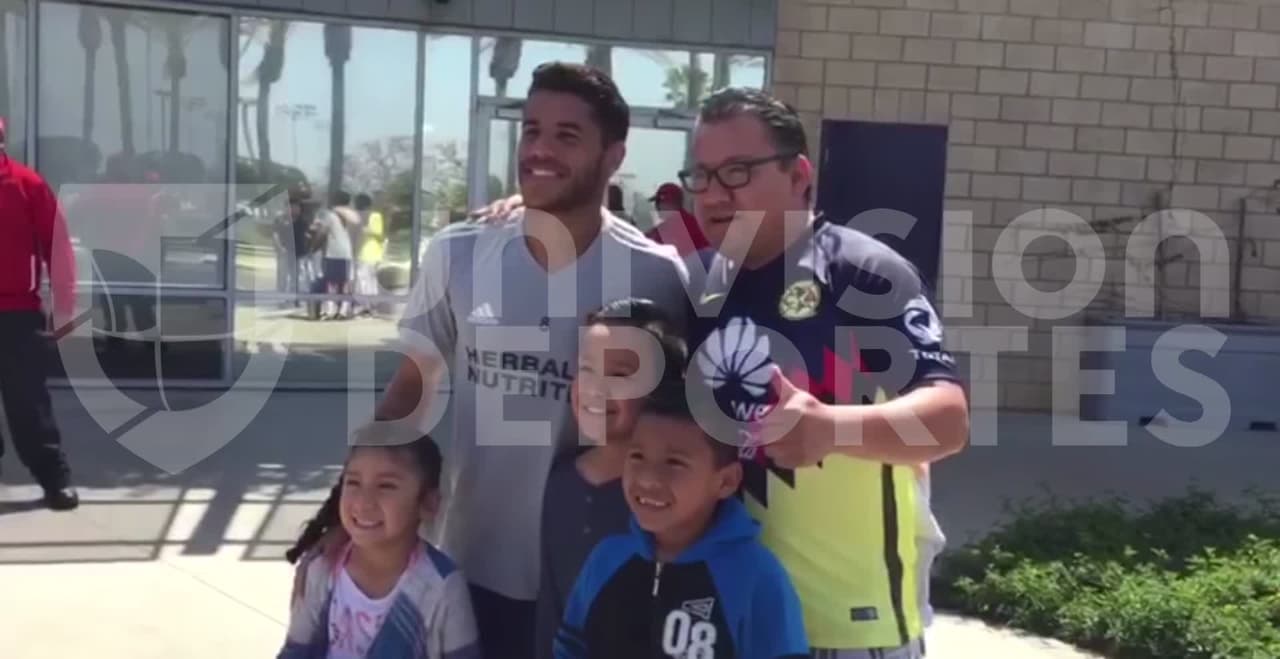 El jugador del LA Galaxy concedió una foto a un aficionado de las Águilas y no tuvo temor en decirle lo bien que se le veía la playera azulcrema.