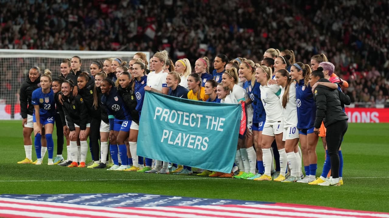 Jugadoras de Inglaterra y Estados Unidos protestan ante los casos de abuso en la NWSL