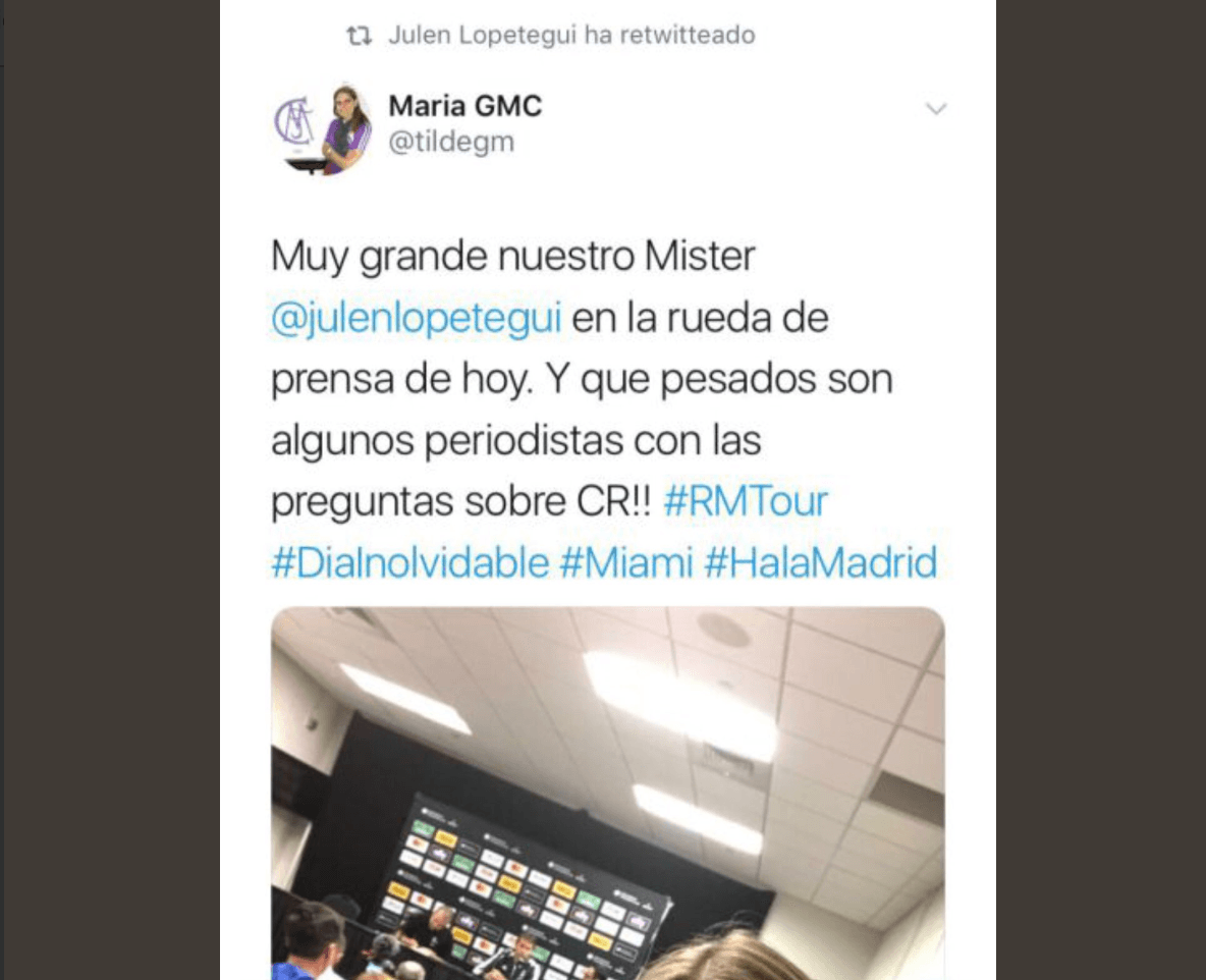 Julen Lopetegui, DT del Real Madrid, cerró su cuenta Twitter por darle retuit a una publicación sobre CR7