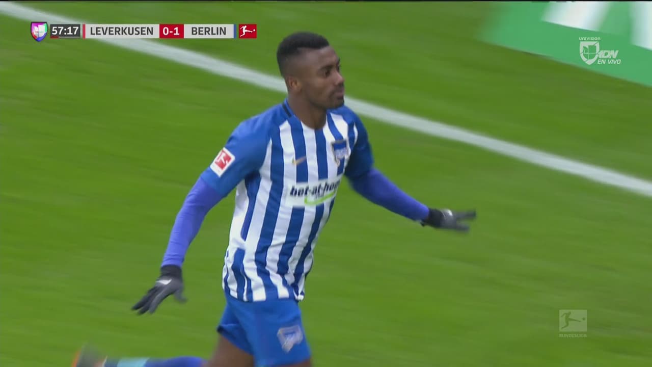 El delantero del Berlín facturó en gol una mala recepción de Tah para poner distancia en el marcador para su equipo sobre el Leverkusen.