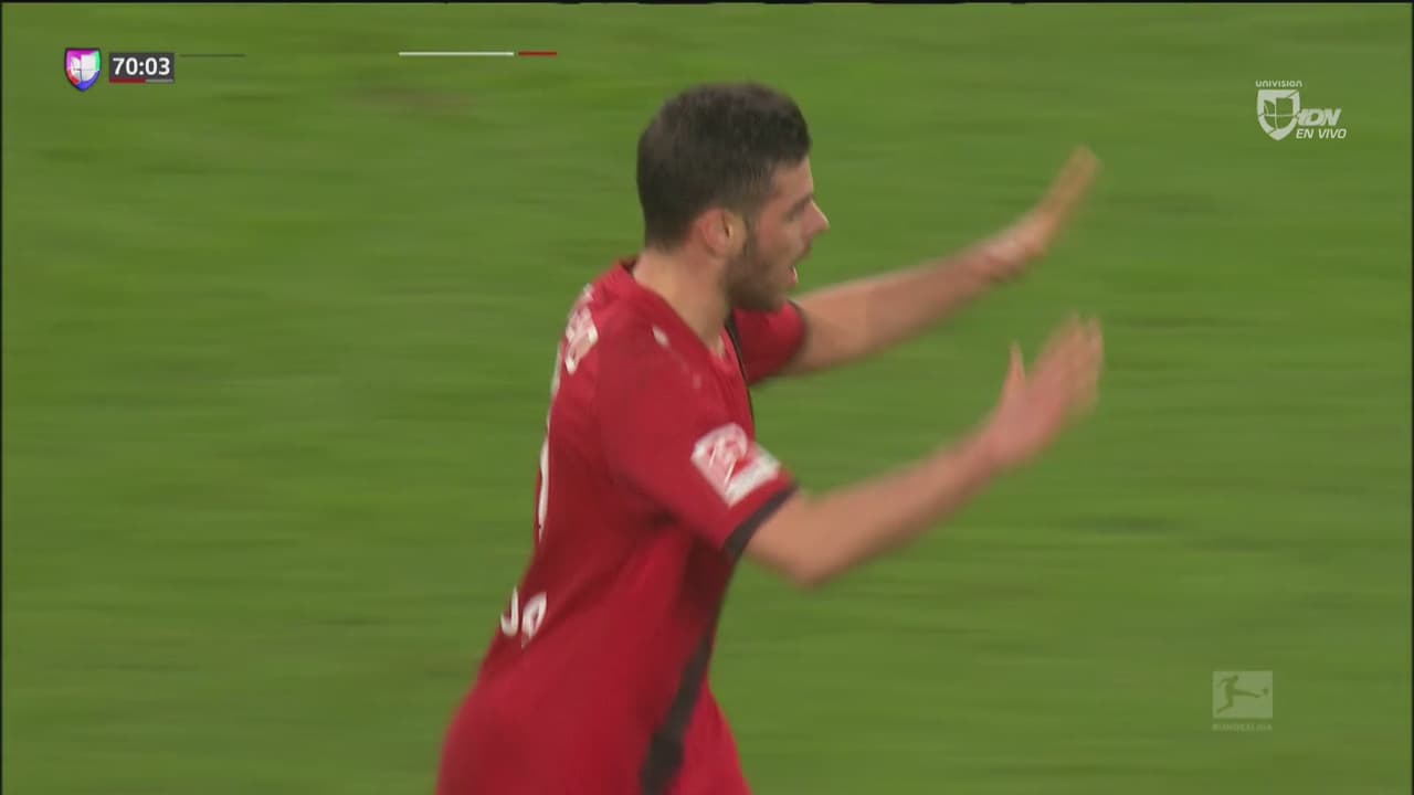Kevin Volland, con un poco de suerte, descontó para el Leverkusen