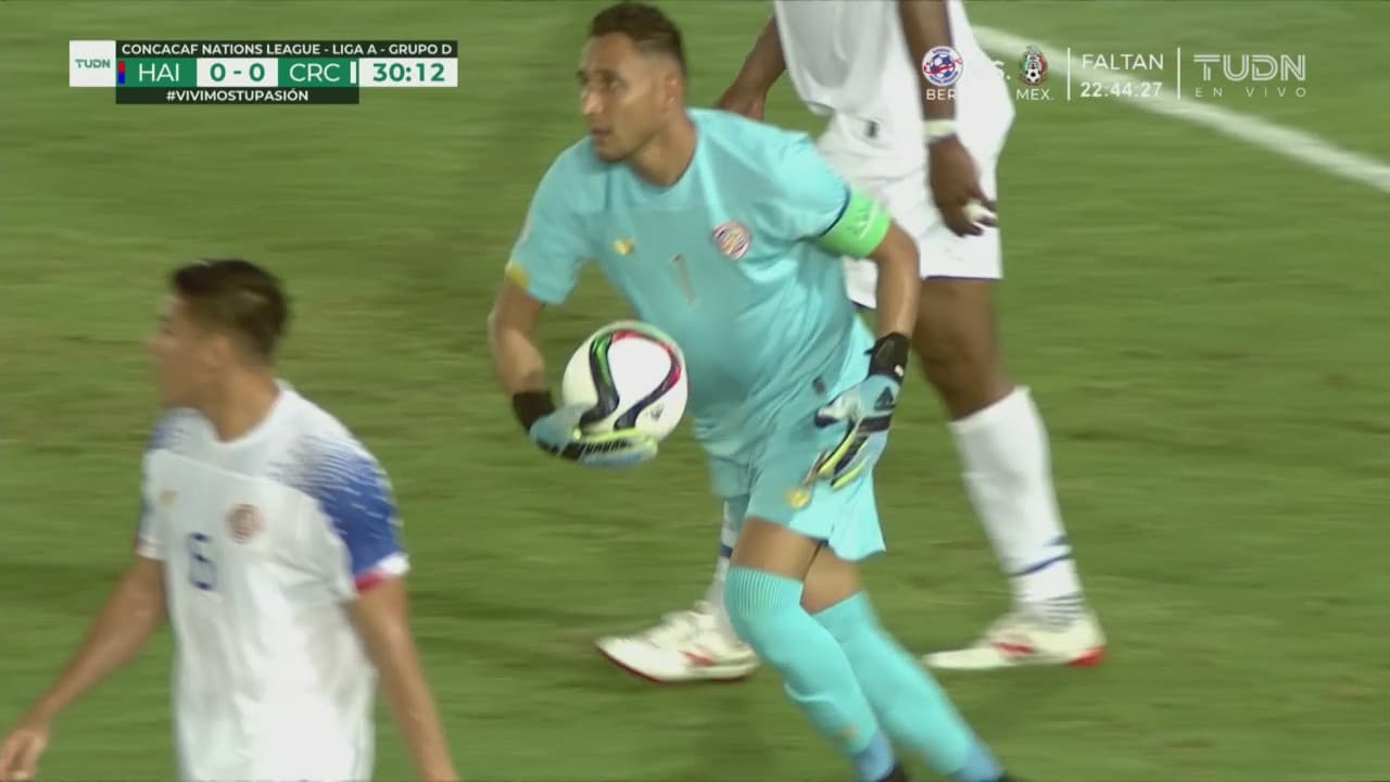 Haití no se rendía y Nazon sacó un potente riflazo raso desde fuera del área y Navas demostró por qué es uno de los mejores porteros del mundo al lanzarse a su derecha para desviar el balón a tiro de esquina y lograr la mejor atajada del encuentro.