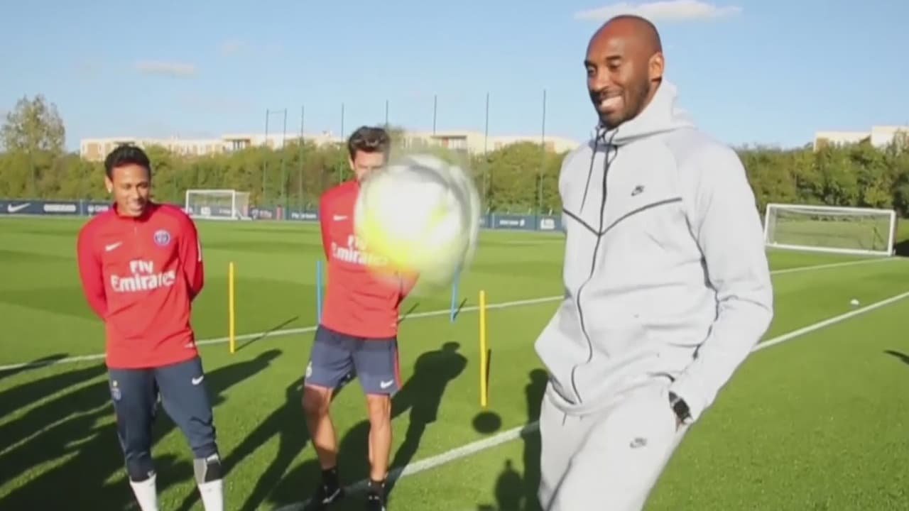 Kobe Bryant visitó al PSG y dio clases de dominadas con el balón en los pies