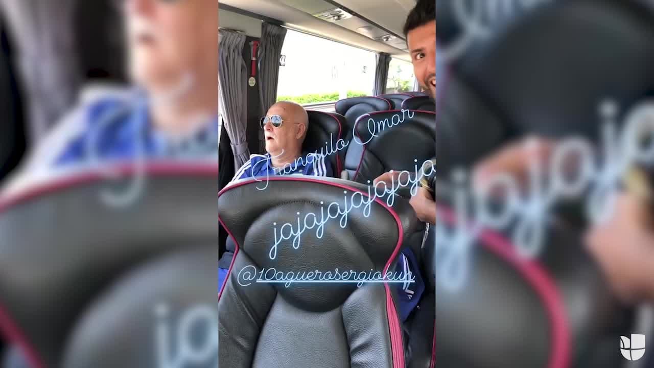 Ángel Di Maria captó el momento justo en el que el delantero despertó a uno de los colaboradores de Jorge Sampaoli mientras dormía en el autobús.
