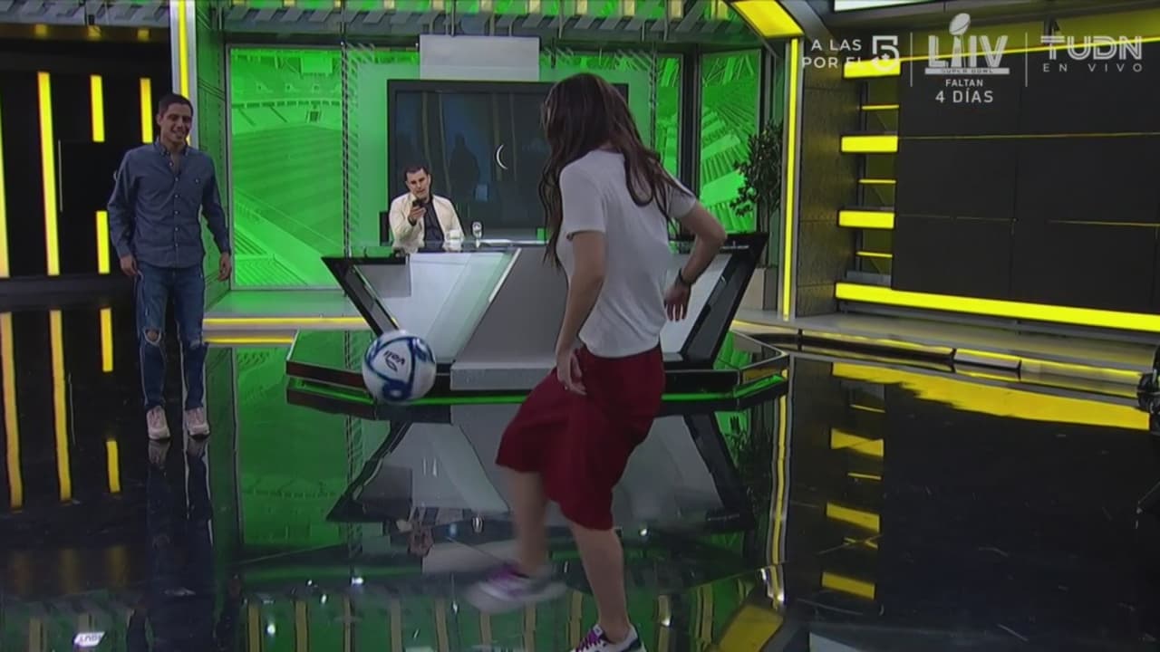 La analista de TUDN demostró su control de balón ante Andrés Vaca.
