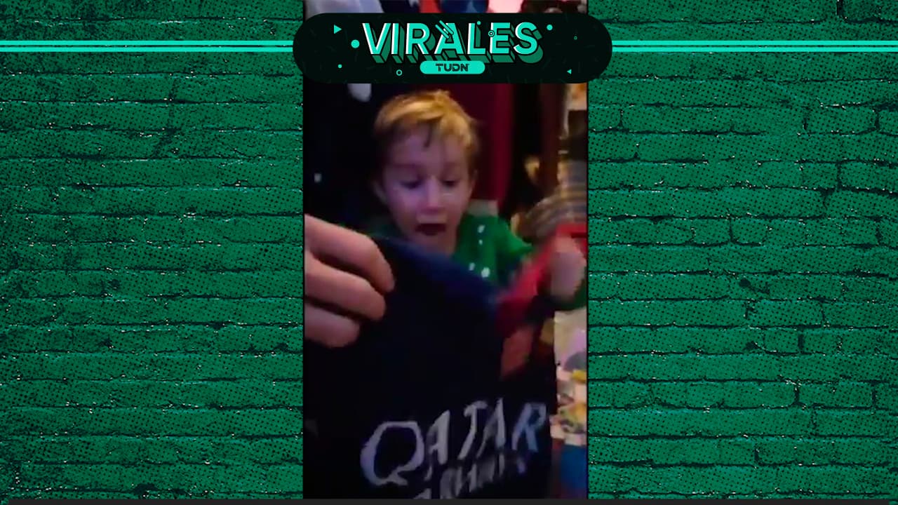 La emoción de un pequeño al recibir de Navidad, el jersey de Dzeko