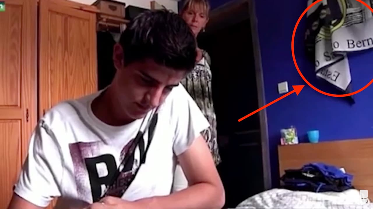 Antes de partir hacia el Chelsea, la TV de Bélgica le hizo un reportaje al novel portero, en la que se ve una bandera merengue en la cabecera de su cama.