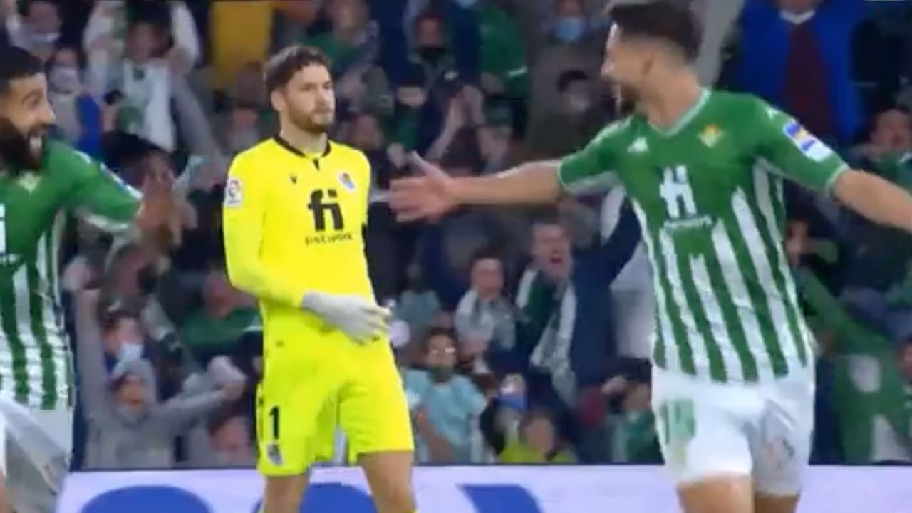 Un gol de Álex Moreno al minuto 14 en una acción desafortunada del guardameta Álex Remiro, quien cometió un fallo garrafal en una salida en falso, le dio la oportunidad al lateral verdiblanco para que marcara a puerta vacía.