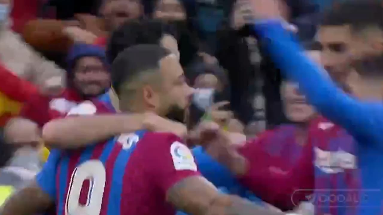 Depay, a cinco minutos del final, anotó desde el punto de penalti el segundo gol del Barcelona ante la incredulidad de los jugadores del Elche y la indignación de los aficionados, que poco después reclamaron una pena máxima en el área catalana por mano de Jordi Alba, que el colegiado no concedió.