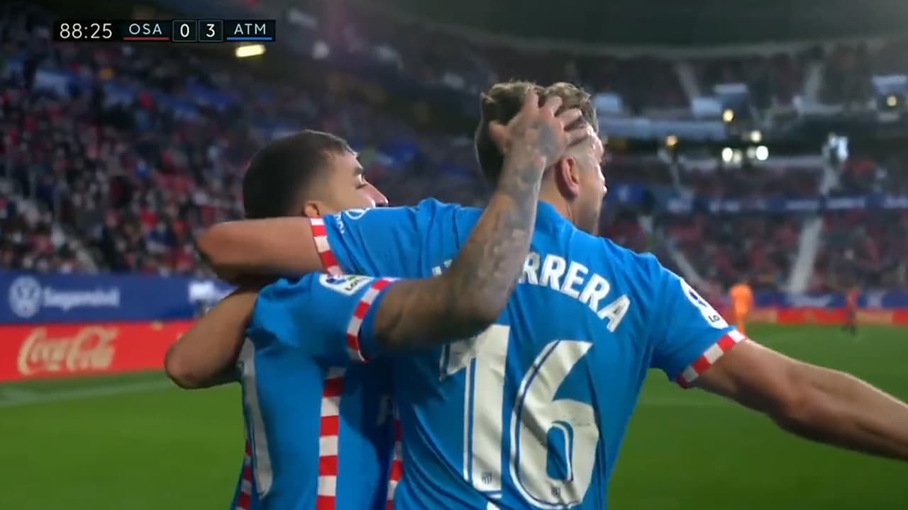 El tercer tanto vino de otra desatención defensiva de Osasuna, que estaba tirado al frente en busca de acercarse en el marcador, pero otro balonazo largo acabó con la esperanza local cuando Ángel Correa midió la pelota dentro del área y techó a Herrera en la salida para sellar el triunfo.