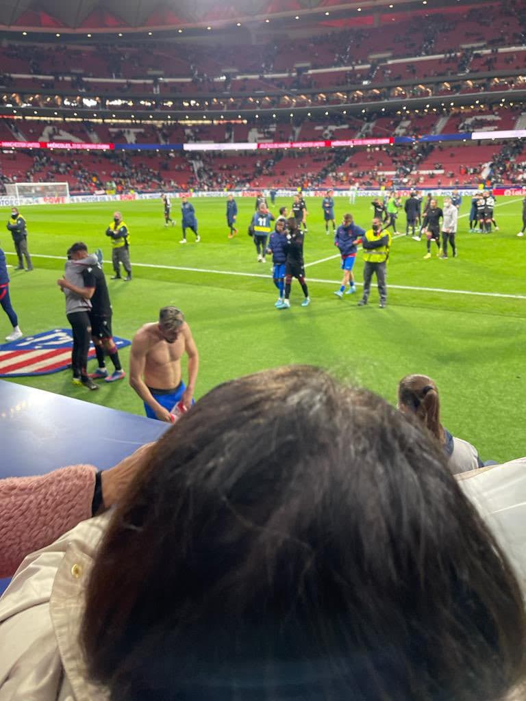 El jugador del Atlético de Madrid se acercó a la tribuna con fan que celebraba cumpleaños.