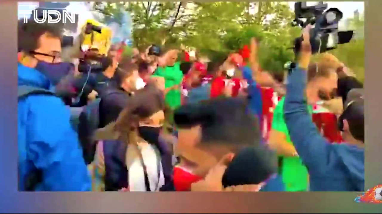 Jugadores del Atlético de Madrid como Jan Oblack, Ángel Correa, Héctor Herrera, Luis Suárez, Marcos Llorente entre otros salieron a celebrar a las afueras del Estadio Municipal José Zorrilla, tras el título obtenido en LaLiga 2020-2021.