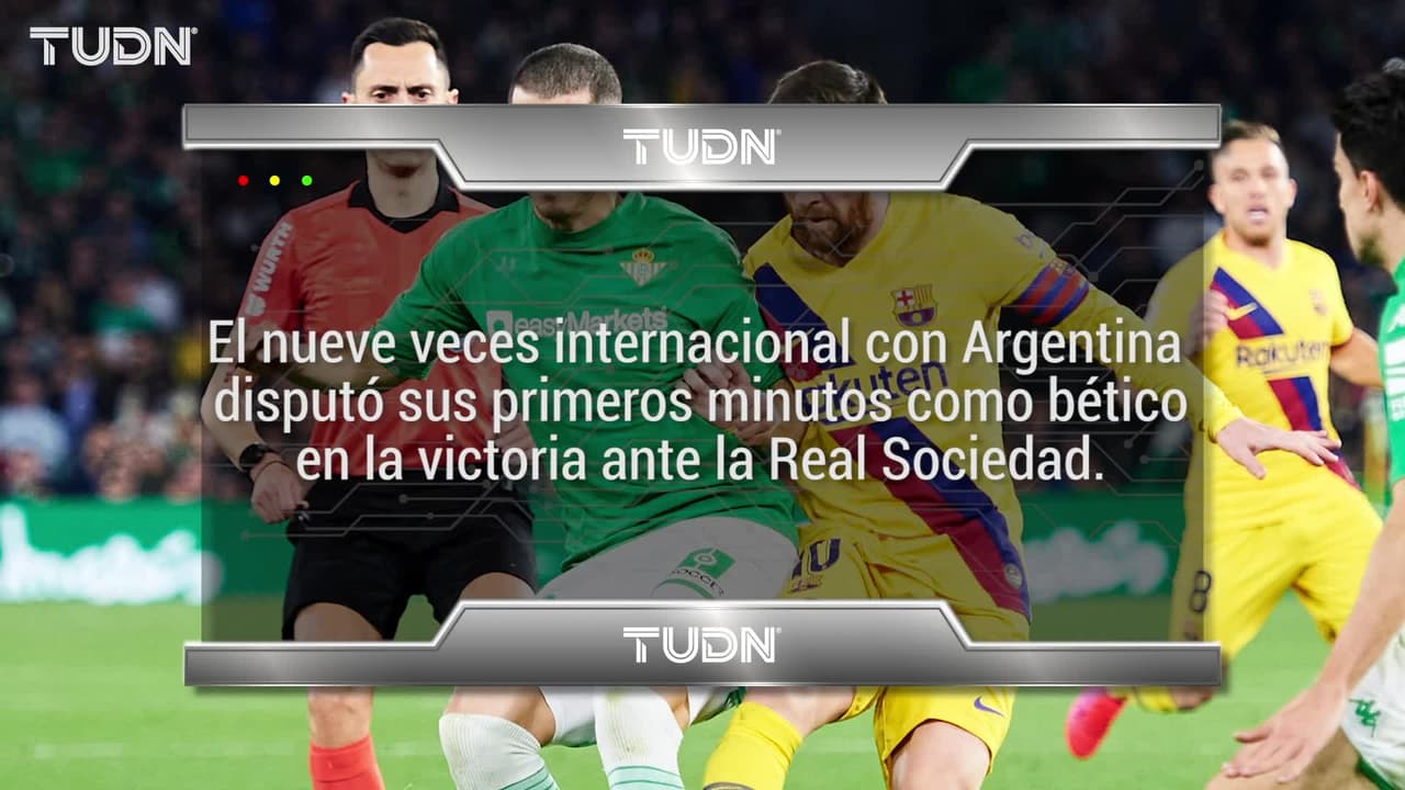 El nueve veces internacional con la albiceleste disputó sus primeros minutos como verdiblanco en la holgada victoria ante la Real Sociedad en el Benito Villamarín (3-0) y fue titular en la eliminación copera ante el Rayo Vallecano, cuando jugó 75 minutos y fue suplido por el delantero Loren Morón.