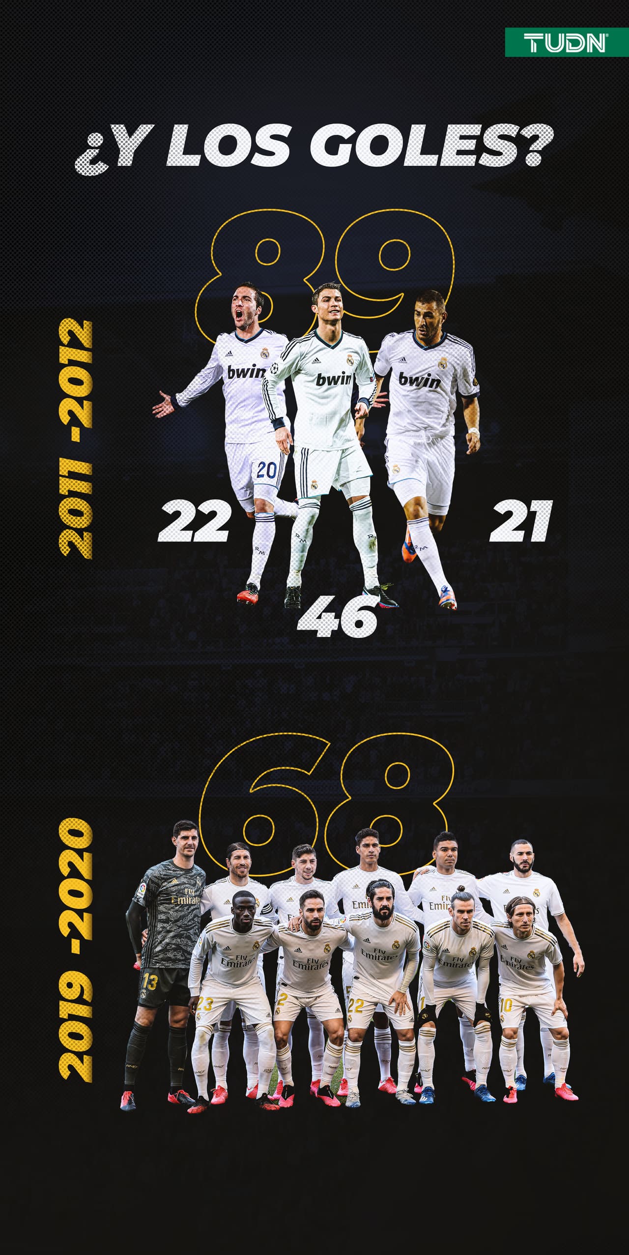 Sin embargo, en la presente campaña 2019-2020, el Real Madrid se coronó consiguiendo menos de 90 puntos y, seguramente, con menos de 75 goles debido a que, hasta el momento, tienen 67 anotaciones, y tendrían que golear a Leganés en la última jornada para mejorar sus números, pero quedarán muy lejos de lo hecho hace ocho años cuando solo tres jugadores sumaron 89 tantos y esta vez, considerando a todo el equipo, quedarán atrás de esos números.