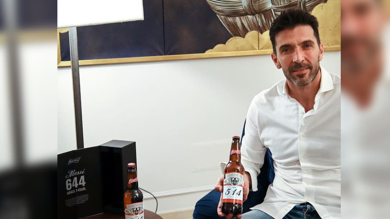 El exportero de Real Madrid recibió la cerveza conmemorativa por los 644 tantos de Leo.