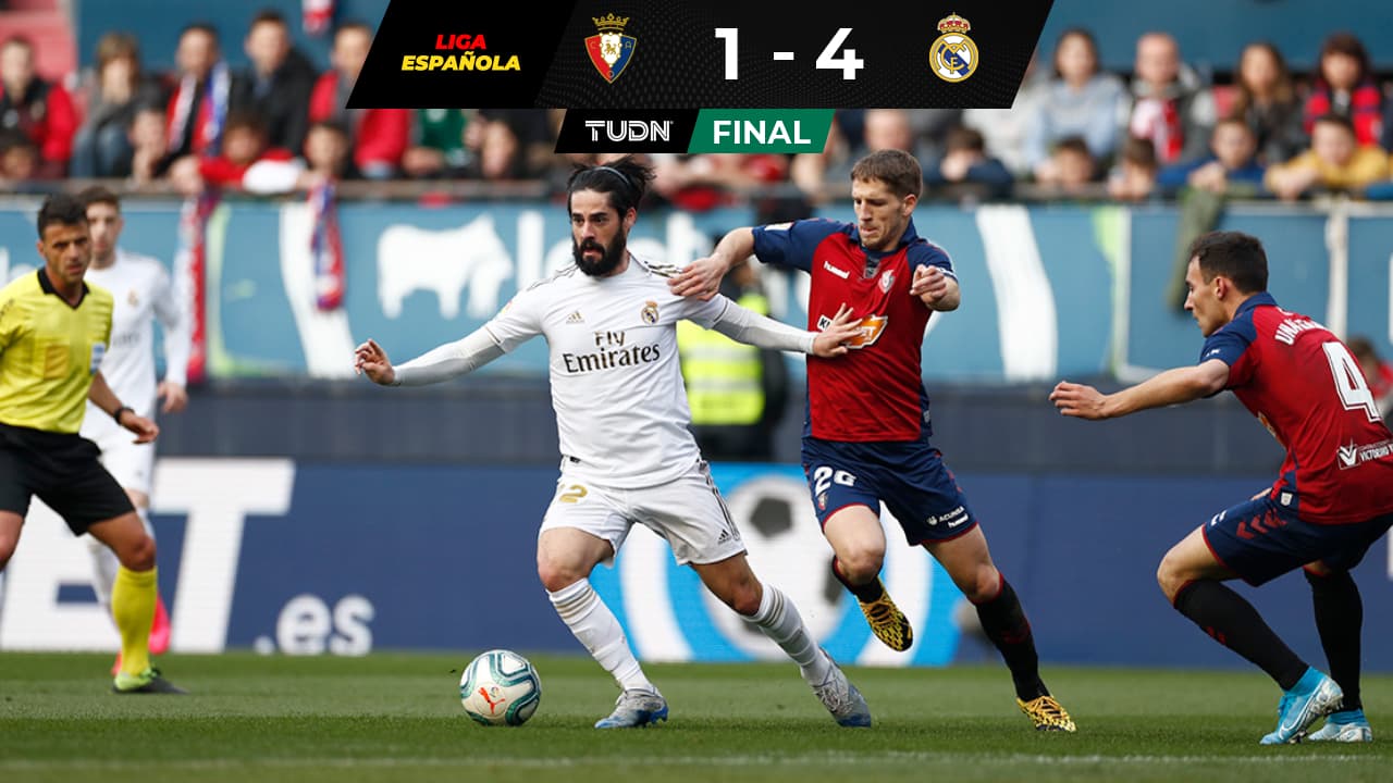 El Real Madrid venció con un contundente 1-4 al Osasuna en la Jornada 23 de LaLiga de España disputada en El Sadar, sin ninguna complicación para seguir siendo líder de la competencia una semana más.