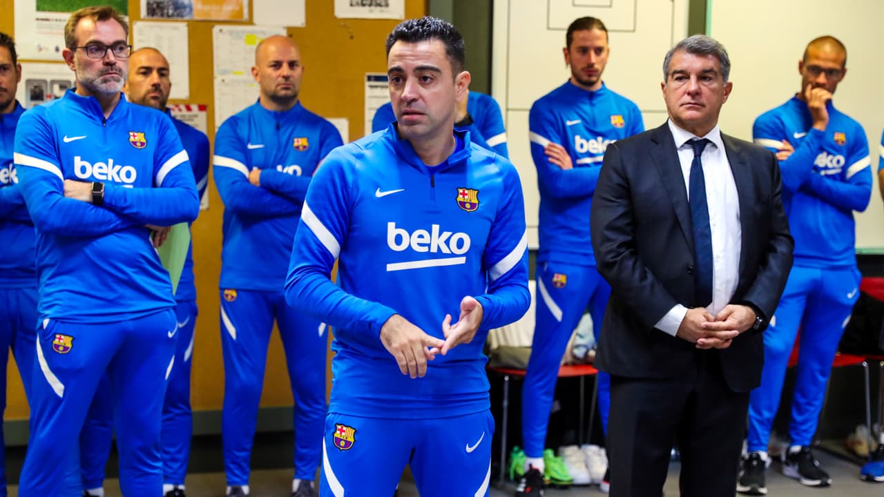 El presidente, Joan Laporta, ha estado en las instalaciones de Sant Joan Despí para presentar personalmente a los futbolistas el nuevo equipo técnico antes del inicio de la sesión.