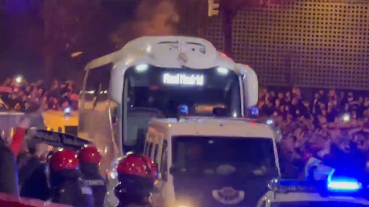 Aficionados agreden camión del Real Madrid al lanzar botellas y objetos