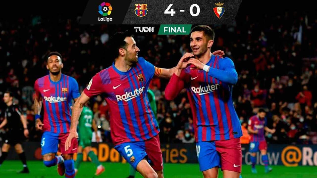 El Barcelona logró una contundente victoria por 4-0 ante el Osasuna, partido disputado en el estadio Camp Nou, y subió ahora hasta el tercer lugar de LaLiga de España.
