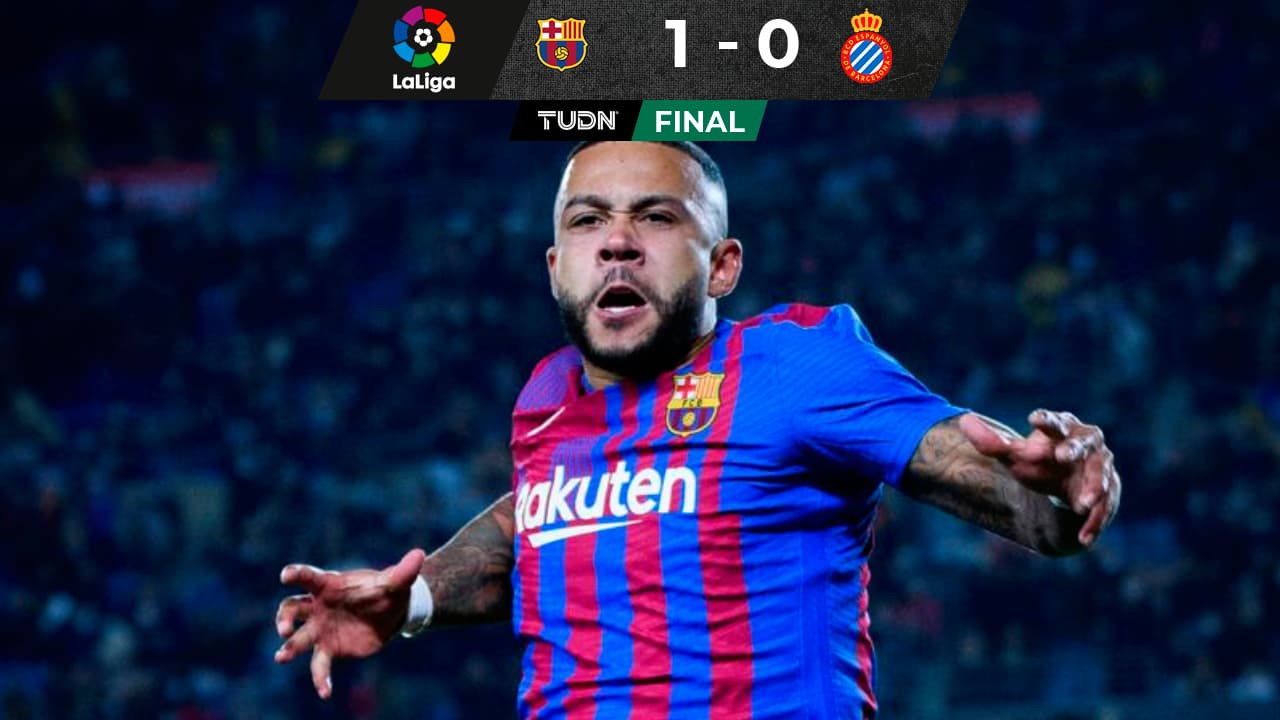 El Barcelona, que aún tiene mucho que mejorar, se quedó con el triunfo en el Camp Nou gracias a un polémico penal de Cabrera sobre Depay, ya que el defensa del Espanyol sí tocó el balón cuando se le barrió al delantero neerlandés que no falló desde los once pasos al minuto 48 para anotar su séptimo gol de la temporada.