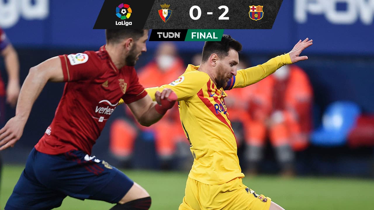 El Barcelona se mantiene en la pelea por el título de España tras vencer por marcador de 0-2 al Osasuna e n la jornada 26 del campeonato español.