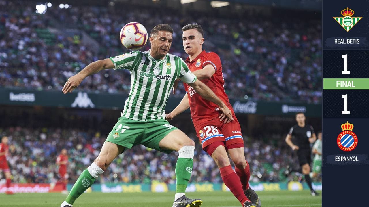 Ante un gran descontento de los aficionados en el Estadio Benito Villamarín, el Real Betis consiguió el empate 1-1 ante el Espanyol de forma cardiaca al minuto 94 gracias a Zohair Feddal, en la jornada 34 de La Liga; por los blanquiazules marcó Sergi Darder.