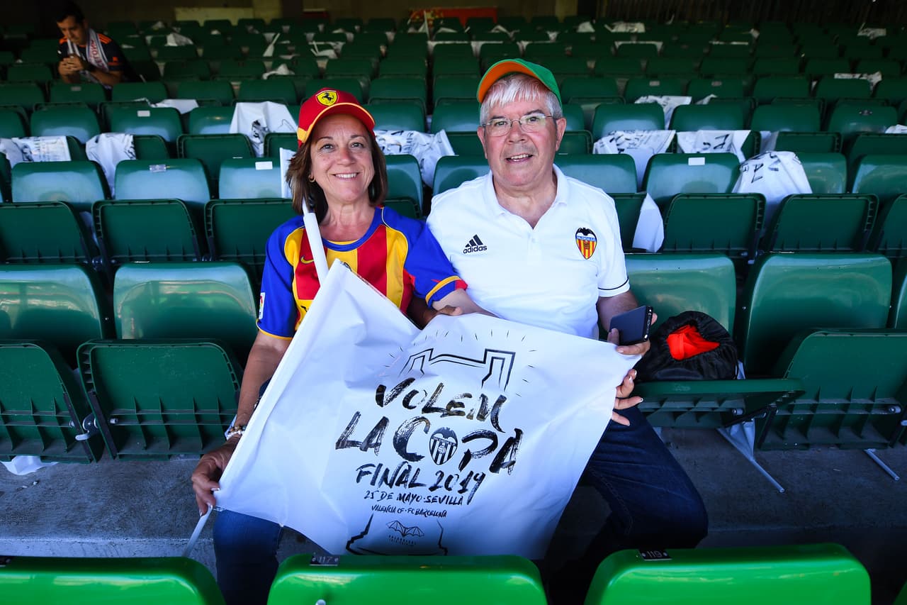 “Parece que estamos en Valencia”, se escuchaba en las calles rumbo a la Avenida de las Razas, punto de encuentro entre los valencianistas, multiplicados en la capital de Andalucía con la ilusión de ver grabar un trofeo con el nombre de su club en el año del centenario.