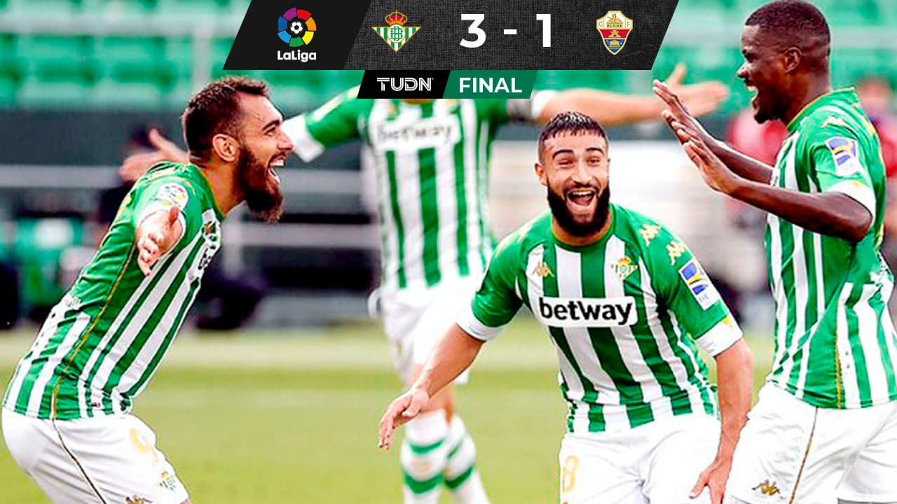 Gracias a un doblete de Cristian Tello y otro tanto de Antonio Sanabria, el Real Betis derrotó en casa al Eche por 3-1, en la Jornada 8 de LaLiga, en un duelo donde el mexicano Diego Lainez participó los últimos nueve minutos al ingresar como relevo.