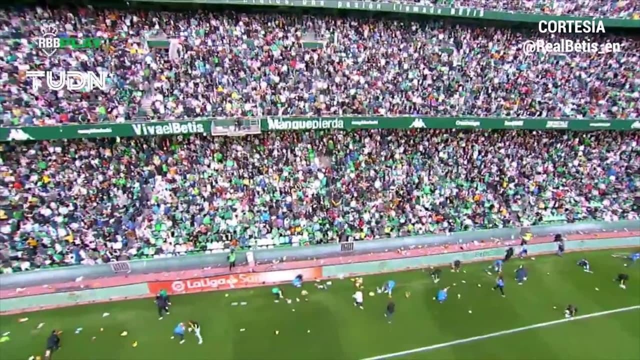 Durante el juego ante Espanyol se arrojaron los regalos a la cancha del estadio.