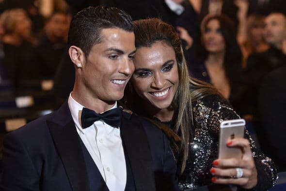Getty ImagesMarta aprovechó la ocasión para tomarse una foto con Cristiano Ronaldo, dos figuras del balompié mundial en el fútbol varonil y femenil.