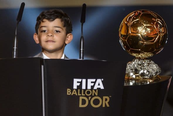 Getty ImagesY el hijo de Cristiano no podía faltar, al lado del premio que acababa de ganar su famoso y admirado padre.
