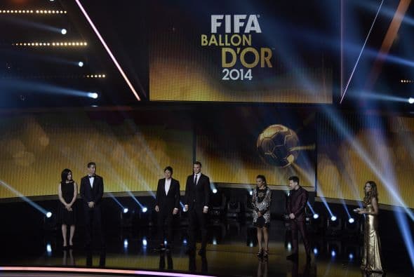 Getty ImagesRonaldo, Angerer, Marta, Messi, Neuer y Wambach lucieron frente a la audiencia previo a conocer al ganador y ganadora del Balón de Oro.