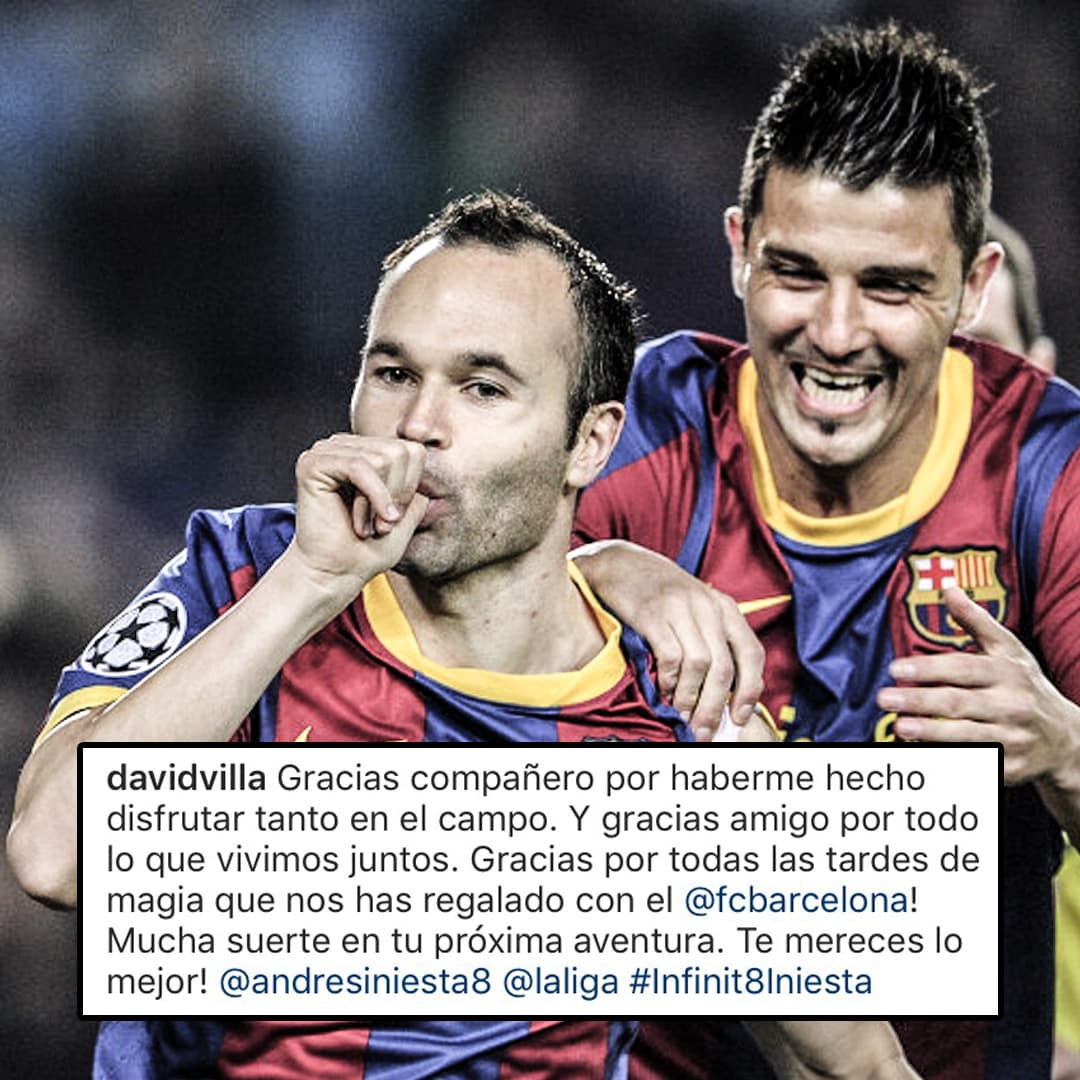 "Gracias, Iniesta, por tanto. Ha sido un honor jugar a tu lado. Mucha suerte en tu próxima etapa", publicó Pedro en su cuenta oficial en la red social Twitter.