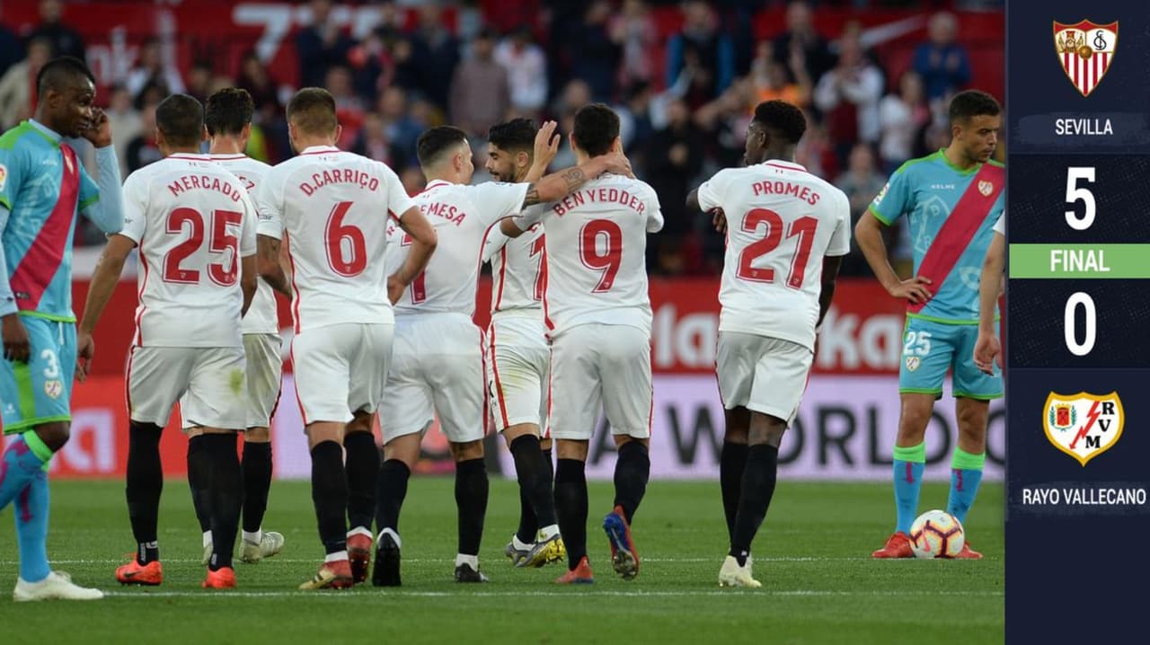 El Sevilla completó la “manita” en el Ramón Sánchez-Pizjuán tras propinarle 5-0 al equipo de Paco Jémez, el Rayo Vallecano, que está en el sótano de la clasificación a cuatro fechas del descenso.